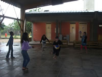 com bola e tênis de mesa na área coberta, os alunos tiveram à sua
