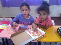 Primeiro dia no Mais Educação Os alunos atendidos no turno da tarde por meio do Projeto Mais Educação tiveram um primeiro dia de aula movimentado, com confecção de crachás e exploração de jogos.